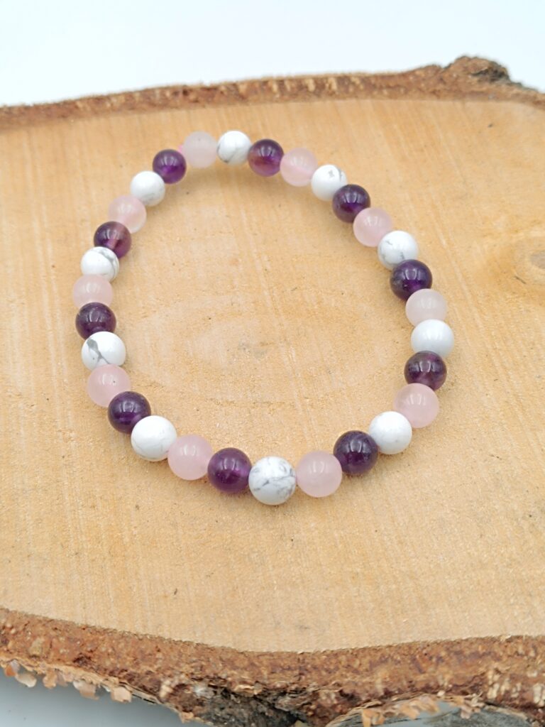 Bracelet Spécial « Calme et Sérénité » en Améthyste, Howlite et Quartz Rose – Perles de 6mm