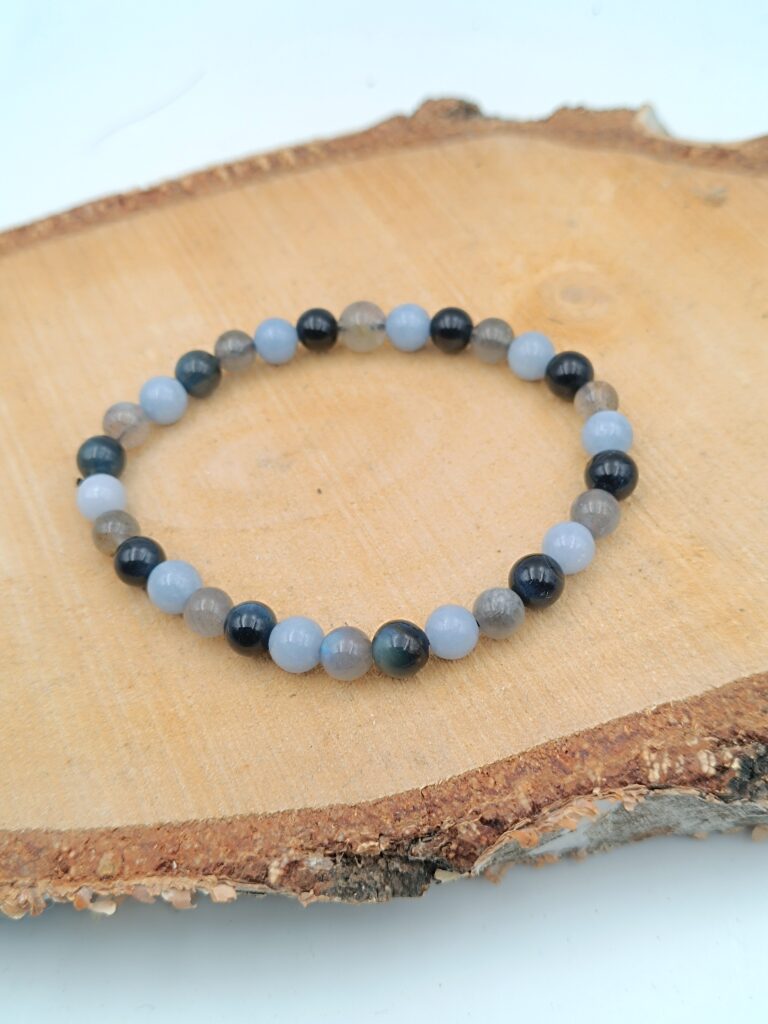 Bracelet Spécial « Lâcher Prise » en Angélite, Labradorite et Oeil de Faucon – Perles de 6 mm