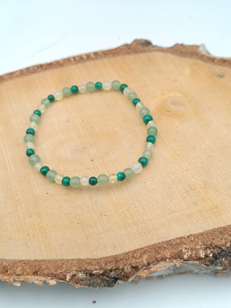 Bracelet Spécial « Prospérité » en Citrine, Malachite et Aventurine de 22 cm en pierres boules de 4 mm